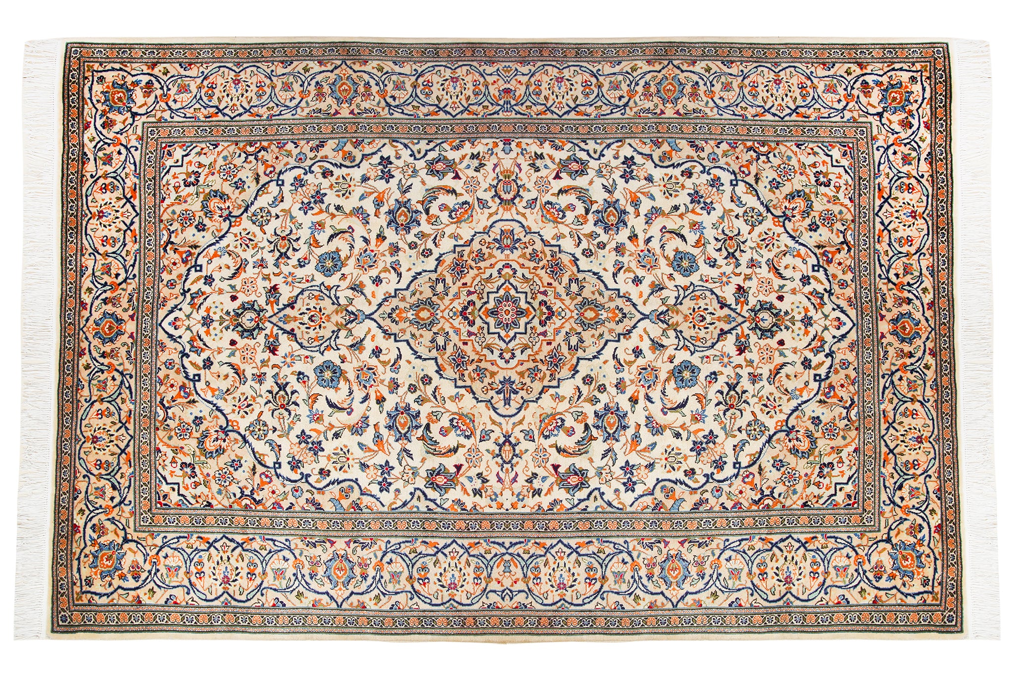 Handwoven with meticulous care, the Multicolored Kashan rug is a testament to the mastery of Persian design. The intricate patterns and dynamic interplay of colors showcase the skilled craftsmanship that Persian rugs are renowned for, creating a masterpiece that's both art and decor.