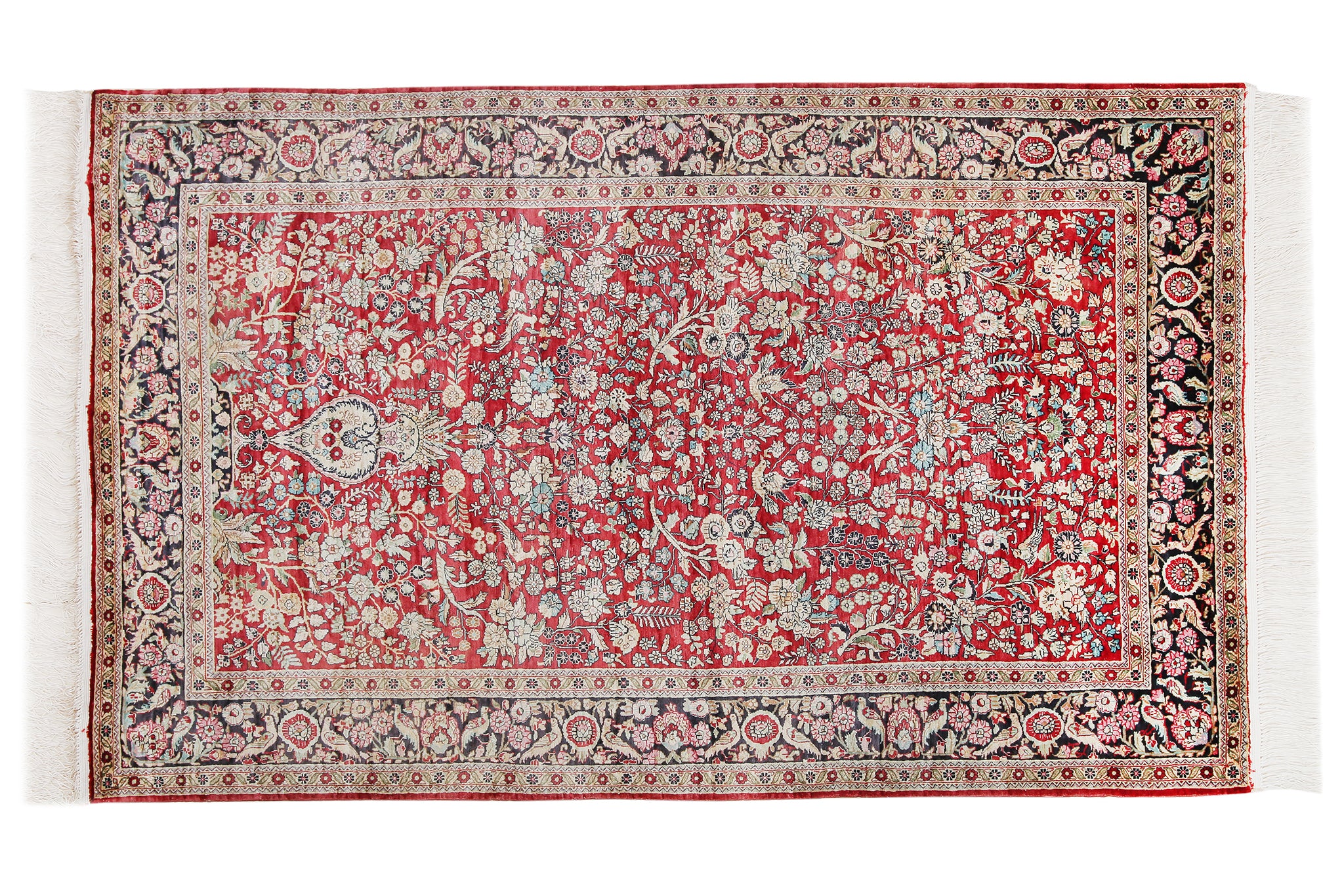 This rug captures the essence of classic design with a modern twist. Its blend of deep reds and blues, adorned with floral beauty, creates a statement piece that bridges the gap between history and contemporary aesthetics.