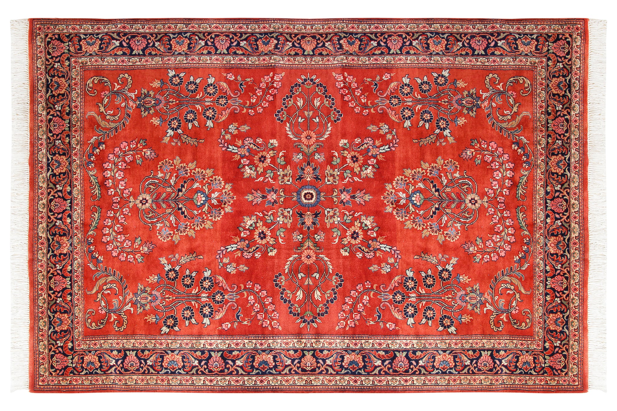 Handcrafted with meticulous care, this antique rug showcases the timeless craftsmanship that Persian rugs are celebrated for. The delicate floral motifs and intricate detailing speak to the rich heritage of Persian design, turning your room into a canvas of tradition and beauty.